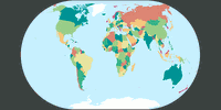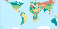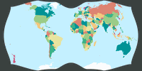 - Die Unzulänglichkeit: Ich habe mit Hilfe von Sim Daltonism überprüft, ob die Farben der Karte auch bei Farbenblindheit noch unterscheidbar sind. Bei der Simulation von Deuteranopie fiel mir auf, dass sich der rote Farbton (z.B. bei Norwegen und Bangladesh) kaum vom dünkelgrünen (z.B. Schweden, Indien) abhebt, also habe ich die Rottönung leicht verändert. (Ich hoffe, ich habe die Situation dadurch nicht noch verschlechtert, denn natürlich spielen da auch die Einstellungen des Monitors mit rein.)