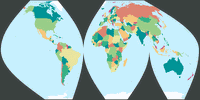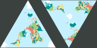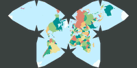 Ich benutzte verschiedene Kartenprojektions-Programme (s.u.), um all die Grafiken, die ich auf meiner Website zeige, zu kreieren. Bei manchen davon spielt es keine Rolle, ob ich sie mit oder ohne Gradnetzlinien berechnen lasse: Der Arbeitsaufwand ist der gleiche. Aber in anderen erfordert ein vernünftiges Gradnetz einen zusätzlichen Aufwand. Normalerweise ist mir das egal, wenn ich eine Handvoll neuer Entwürfe hinzufüge, aber in diesem Fall musste ich 327 politische Karten erzeugen. Bitte seht es mir nach, dass ich mich unter diesen Umständen für den einfachsten und schnellsten Weg entschieden und das Gradnetz weggelassen habe!