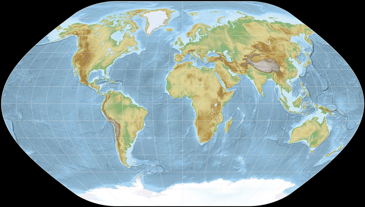 Das Bild wurde erzeugt mit SimpleDEMViewer unter Verwendung von ETOPO1-Höhendaten. Projektion auf Hölzel mit Geocart. Die Farbpalette basiert auf Maps template von Eric Gaba, Username Sting.