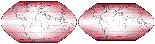 Alles in allem ist die Hölzel-Projektion meiner Meinung nach eine gute Wahl, wenn Du eine pseudozylindrische Projektion mit gleichabständigen Breitenkreisen haben möchtest (obwohl ich nicht verschweigen will, dass dies nicht meine Lieblings-Art der Projektionen ist).