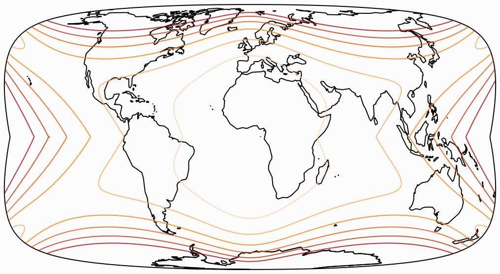 | Anmerkungen | Transformation der Mollweide-Projektion, mit Bonne φ1 = 24°S. Lies meinen Blogpost für nähere Informationen. |