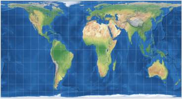 Zugegeben, die Verzerrungsverhältnisse nahe der Pole werden schon haarig, besonders für Kanada und Alaska, Nord- und Ost-Sibirien. Dennoch denke ich, dass die Verteilung der Verzerrungen nicht ganz übel ist, wenn man denn eine fast-schon-rechteckige flächentreue Projektion wünscht.