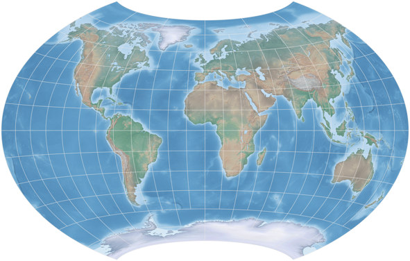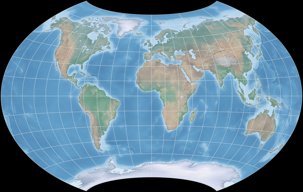 Keiner davon hat irgendeine besondere Eigenschaft oder zeigt eine außergewöhnlich vorteilhafte Reduzierung von Verzerrungen, sie sind nur Beispiele für meiner Meinung nach visuell ansprechende lentikuläre, vermittelnde Projektionen. Und derzeit ist der BCW-A II mein Favorit dieses Trios (allerdings hat sich das schon mal geändert und könnte sich wieder ändern).