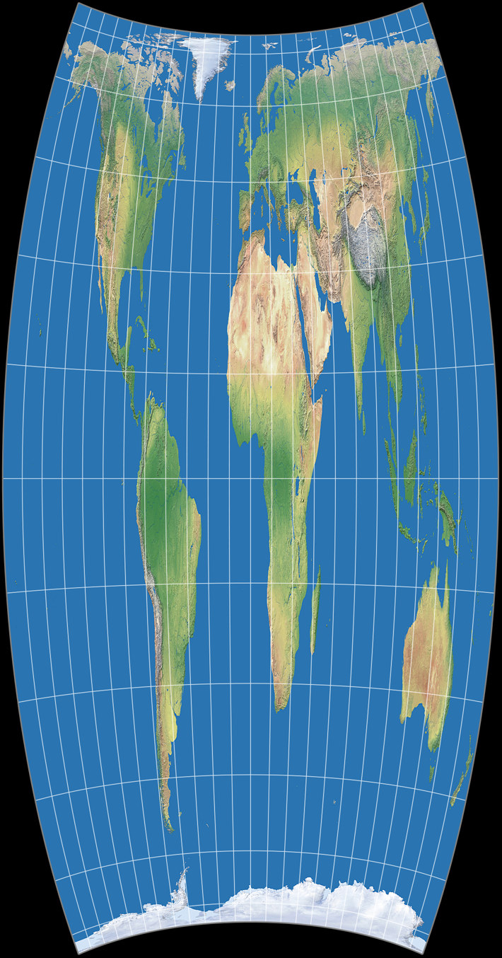 | Anmerkungen | Eine flächentreue Projektion, welche die polaren Gebiete bevorzugt. |
