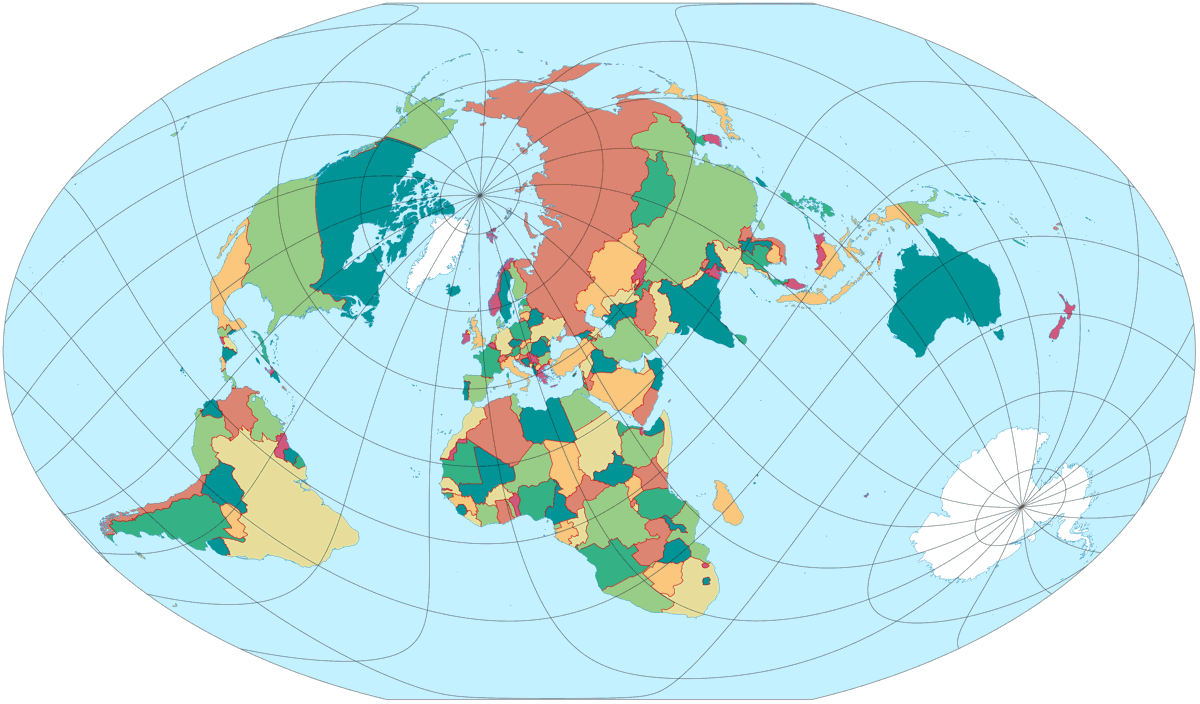 Für diesen Monat habe ich eine Projektion, die »ganz und gar nicht ›ungewöhnlich‹ ist« angekündigt. Und als pseudozylindrische Projektion mit Pollinie und gleichabständigen Breitenkreisen ist das der Frančula VII auch sicherlich nicht. Das macht in diesem Falle aber auch gar nichts – im Gegenteil, in den meisten Fällen dürfte eine unauffällige Projektion bei einer politischen Karte sogar gewünscht sein.