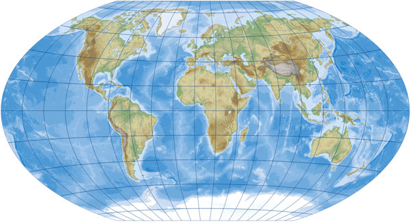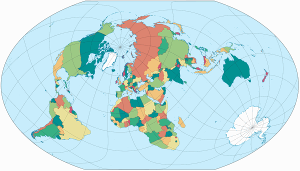 Kann ich über diese Projektion irgendetwas sagen, was ich nicht schon im Blogpost Happy Birthday, Winkel Tripel gesagt hätte? Nun, ich könnte feststellen, dass sie immer noch (seit 50 Jahren oder so) im Diercke-Weltatlas benutzt wird, für Haupt- und viele thematische Weltkarten …