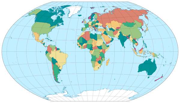 Eine Kollektion von Projektionen für politische Weltkarten