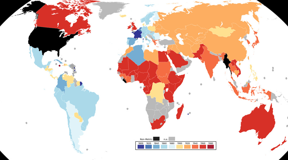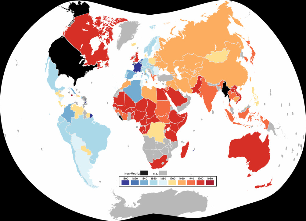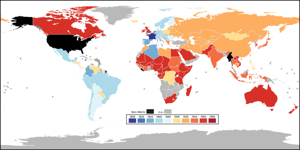 an, welche den Zeitraum der Metrikation (Prozess der Einführung des metrischen Systems)