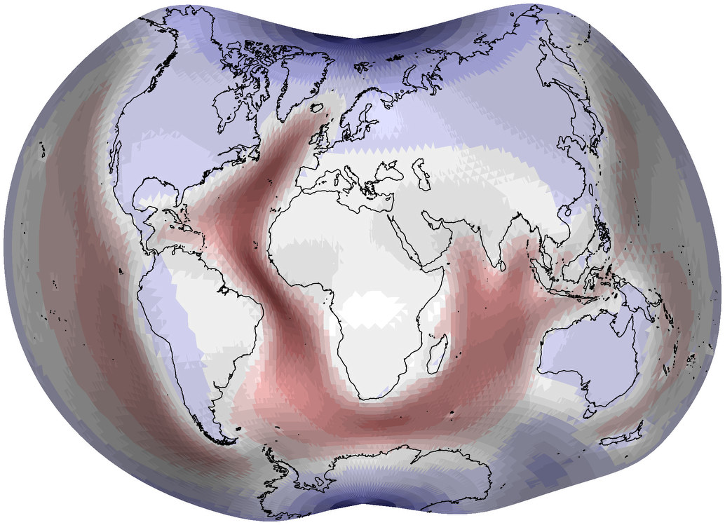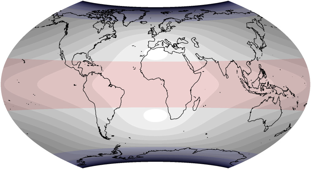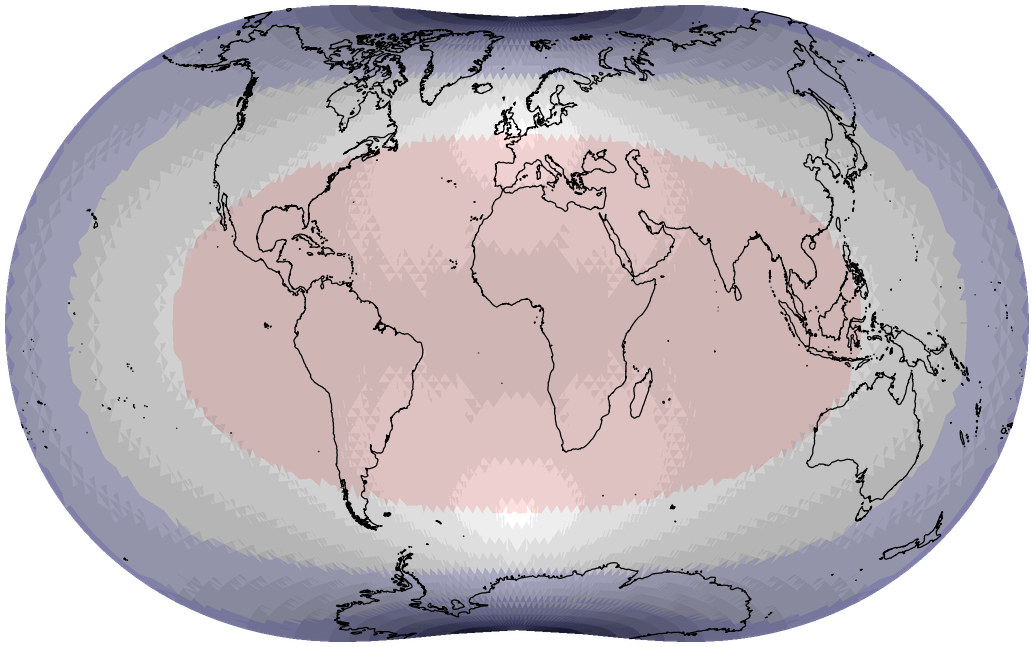 Was mir weniger gefällt, ist die extreme Nord-Süd-Streckung der niedrigen Breiten. Die ist ein typisches