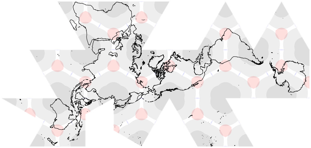 Bezüglich Kunimunes neuer Konstruktionsmethode – er hat bewiesen, dass sie sowohl für konventionelle, als auch für ungewöhnliche Projektionen verwendet werden kann; obgleich ich denke, sie spielt ihre Stärken bei unregelmäßigen, asymmetrischen Entwürfen aus. Kunimune stellt die technischen Details und Sourcecode zur Verfügung (lies den Vorabdruck seiner Abhandlung), so dass sich jeder da einarbeiten kann. Es wird spannend sein zu sehen, ob auch andere Leute diesen Ansatz nutzen werden, um neue Projektionen zu kreieren…