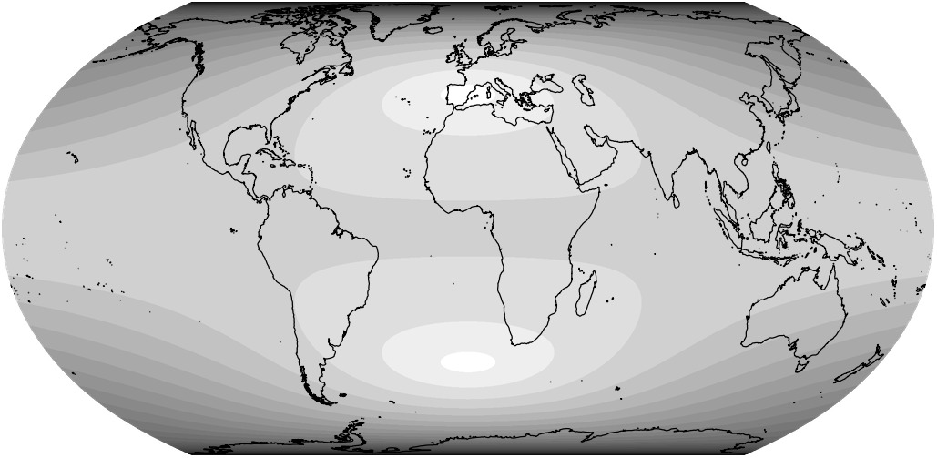 Justin Kunimune hat eine neue Methode, um Kartenprojektionen zu erstellen, vorgestellt und ihre Anwendung an sieben Projektionen demonstriert. Danseiji N, I und II sind nicht gerade spektakulär – weil sie es nicht sein sollen, sie wurden als Alternative zu konventionellen Projektionen entworfen. Sie haben realistische punktförmige Pole und die leicht telophasische Form erzeugt ein angenehmes Erscheinungsbild. Meiner eigenen Meinung nach würden sie alle von einer moderaten horizontalen Streckung profitieren – aber das kann man ja selbst machen, entweder durch Eingabe von entsprechenden width/height-Werten im Export-Dialog von Kunimunes oben erwähnter eigener Software, oder einfach durch die Verwendung eines Grafikprogramms.