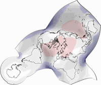 »sie zeigt die Beziehungen zwischen den Kontinenten (besonders Nordamerika und Eurasien)