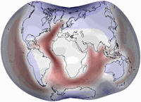 Wie schon gesagt, fügt er absichtlich Verzerrungen hinzu: Er verkleinert die Ozeane. Aber warum?