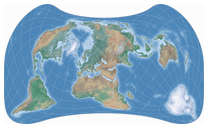 Instead of the traditional approach, where an elegant mathematical formula describes the mapping between spherical and planar coordinates, the idea with these projections is to create a mesh on the sphere, and map the mesh to the plane by assigning a position to each of the vertices. The mapping could be prepared manually, or through some kind of finite elements algorithm, designed to optimize for arbitrary constraints. For example, one might want to favor land continuity, or to lower the distortion of areas, or angles – or any other rule such as giving a larger amount of space to land vs ocean, or a larger amount of space to more populated areas…