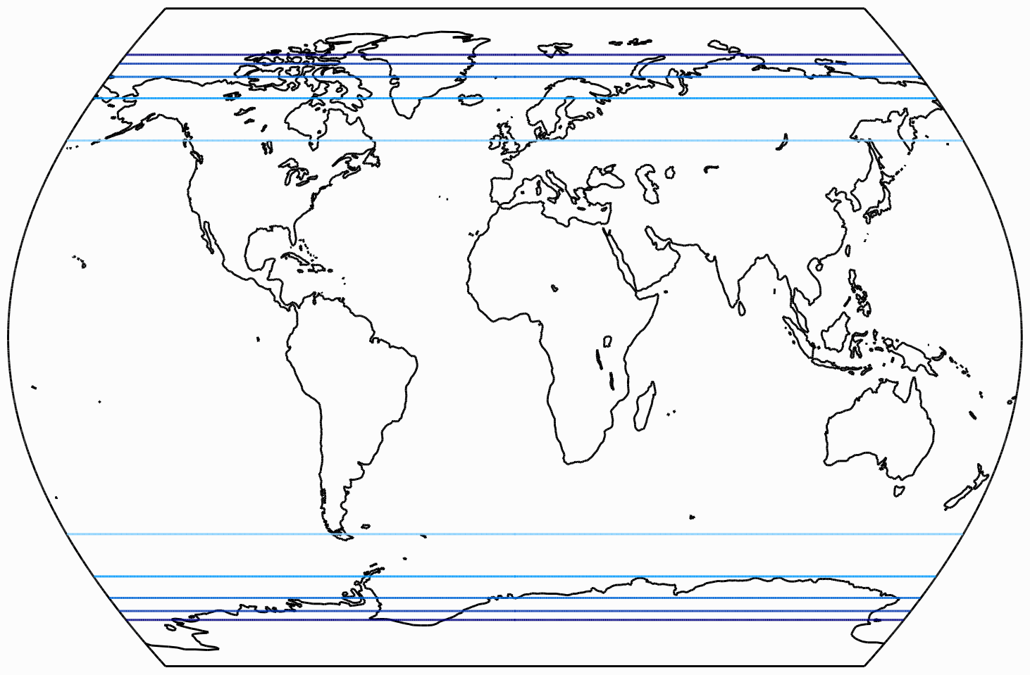 Die letzten fünf Projektion sind von den gleichen Eltern abgeleitet wie zuvor, aber wurden für niedrige Verzerrungswerte nach dem Airy-Kavrayskiy-Kriterium optimiert. Meiner Meinung nach sehen die pseudozylindrischen Projektionen X und XI viel besser aus als ihre Airy-Gegenstücke. Bei den lentikulären fällt es mir schwerer, mich zu entscheiden: Sie unterscheiden sich zwar deutlich, dennoch sehen sowohl die Airy-, als auch die Airy-Kavrayskiy-Varianten angenehm aus.