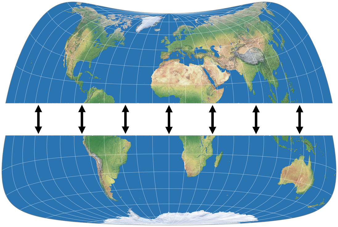 Erzeugt man beide Variante mit dem gleichen nominellen Maßstab, passen sie am Äquator genau zusammen!