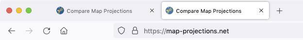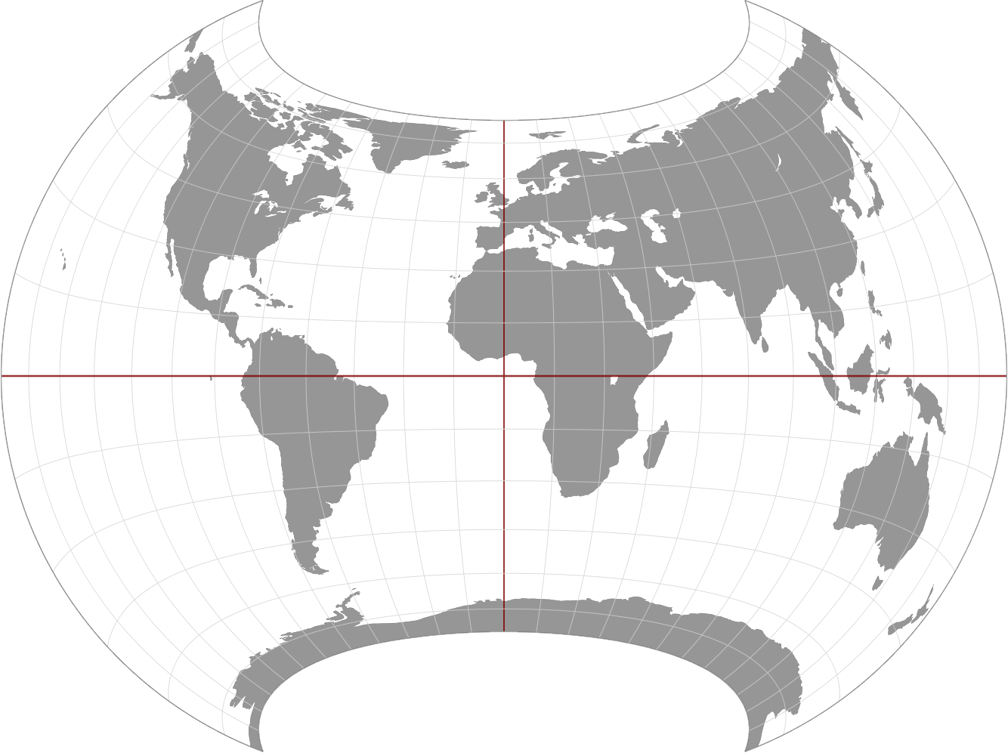 Bitte beachte, dass dies nicht die einzige Art ist, das Seitenverhältnis einer gegebenen Projektion anzugeben: Man kann (und das habe ich oft getan) auch der Längenverhältnis der Hauptachsen nennen. Diese beiden Werte sind identisch bei zylindrischen Entwürfen (z.B. Miller-Projektion), bei pseudozylindrischen (z.B. Robinson-Projektion), und sogar bei einigen lentikulären (z.B. Hammer-Projektion). Bei anderen lentikulären können sie aber auch erheblich voneinander abweichen, etwa beim Canters W08:
