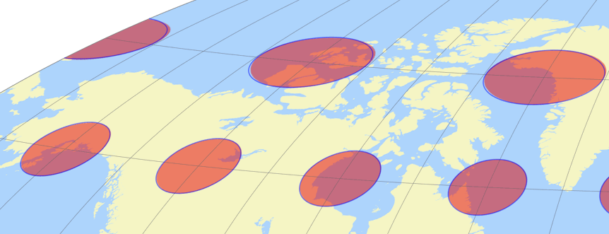 Was ist also der Unterschied zwischen Kleinkreisen und Tissot-Ellipsen? In dem Tissot-Artikel, den ich vor einigen Jahren geschrieben habe, habe ich zur Erklärung gesagt: