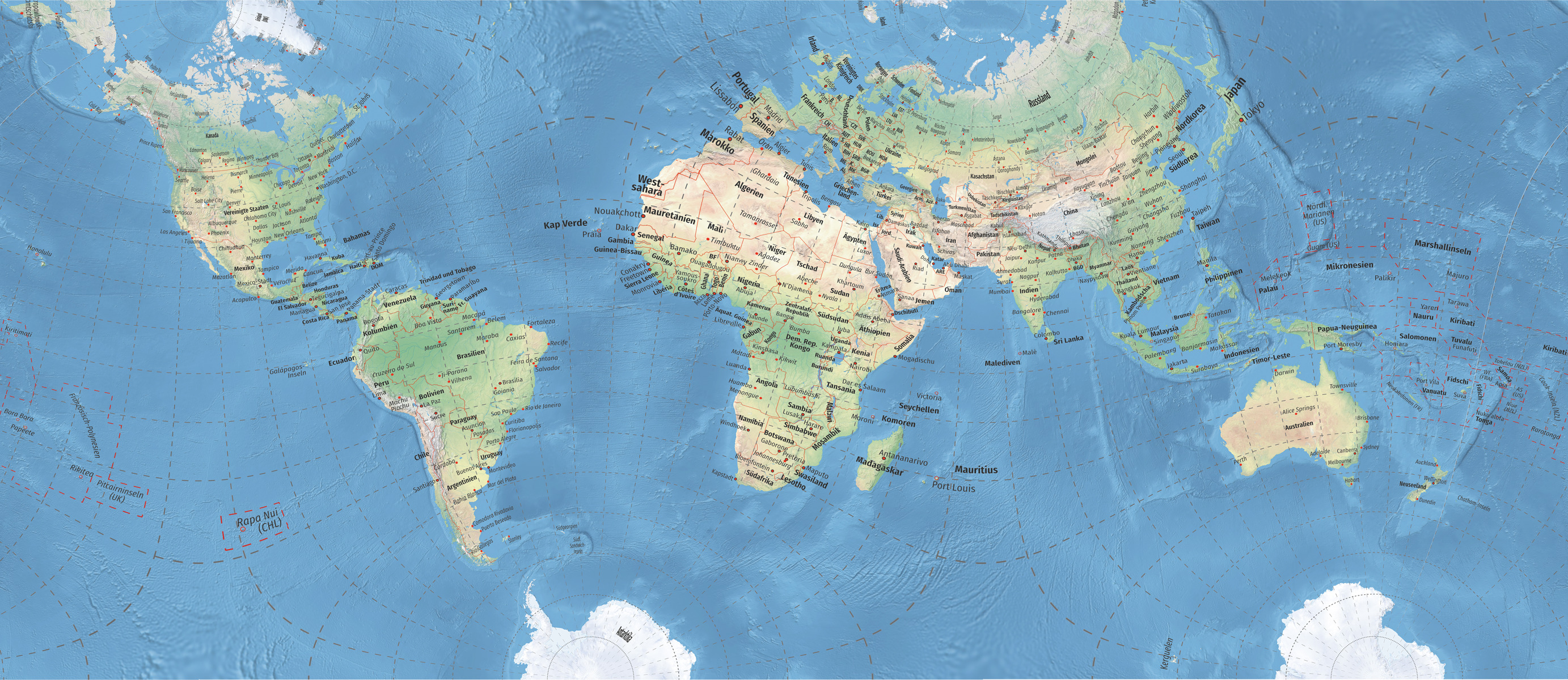 Ich glaube kaum, dass irgendjemand eine derartige Weltkarte in einem Atlas