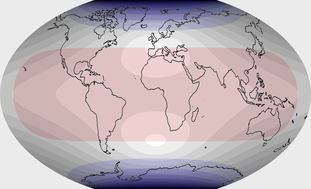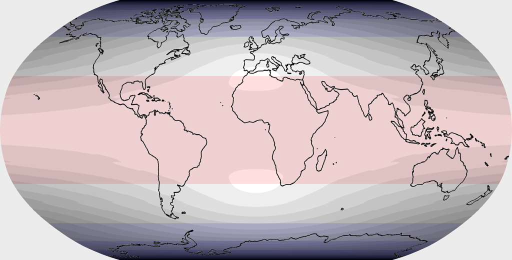 der Karte Verzerrungen aufweisen, die höchsten Werte aber von den Landmassen ferngehalten werden.