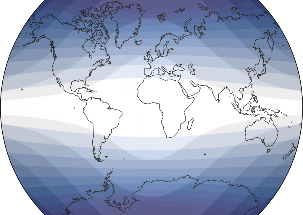 Concialdi hatte sein Werk auf graphischem Wege erstellt (ja, es geht auch ohne mathematische Formeln und dies ist auch nicht das erste derartige Beispiel in der Geschichte der Kartenprojektionen), Justin Kunimune erarbeitete aus der grafischen Vorlage die Formeln, so dass nun eine Software bereitsteht, um Projektionsgrafiken wie diese zu generieren: