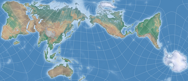- Die nördliche Hemisphäre sollte nicht unterbrochen werden. Da der größere Teil der Kontinente in der nördlichen Hemisphäre liegen, sollte es möglich sein, virtuell von Japan nach Kanada zu wandern, dabei Russland, Skandinavien und Grönland zu durchqueren, ohne die Karte zu verlassen.